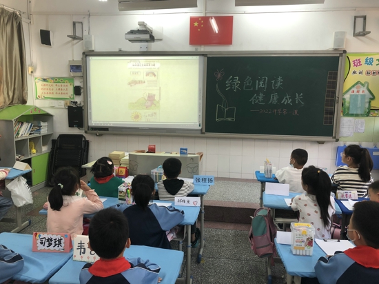 此外,各班學生也在班主任老師的帶領利用開學第一課班會活動通過講解、觀看小視頻等多種形式積極宣傳綠色閱讀的重要性。同時,班主任老師還教會了孩子們?nèi)绾芜x擇健康、有意義的圖書,大家還相互分享了自己喜歡的讀書名言,講述了名人讀書故事,介紹了自己喜歡的圖書。