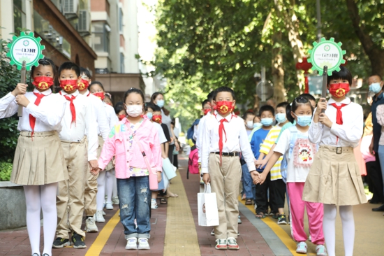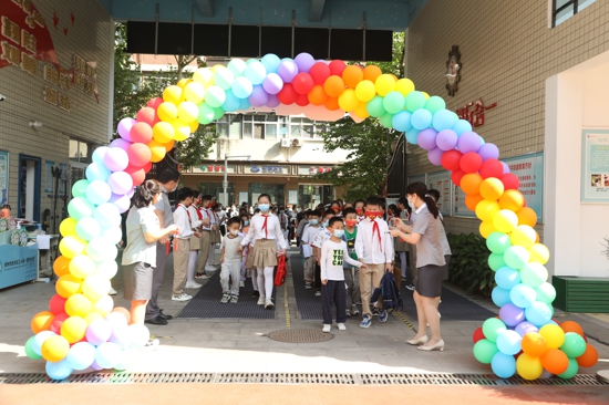 中新網(wǎng)河南9月3日電(吳勇強 趙文莉)2022年9月1日上午,金水區(qū)工人第一新村小學(xué)迎來了一批新的小可愛。他們稚嫩的面龐上滿是驚喜,靈動的眼睛充滿好奇,蹦跳的步伐盡是欣喜!在高年級哥哥姐姐們的引領(lǐng)下,大手牽小手,個個昂首挺胸,神采奕奕,伴著歡快的音樂,邁著希望的步伐走上紅毯,穿過色彩繽紛的“啟智門”,步入了知識的殿堂。