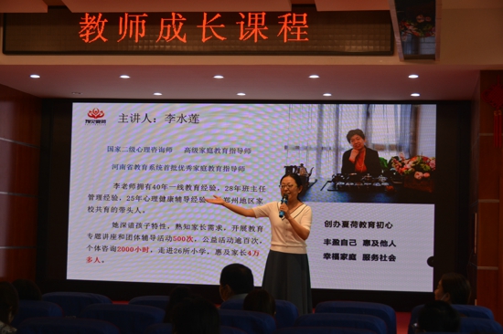 李慶欣副校長做最后總結(jié),鼓勵(lì)各位老師學(xué)會(huì)和自己相處,接納自我,突破自我,關(guān)愛學(xué)生,看見每一個(gè)生命成長的元素,與家長共同助力學(xué)生的發(fā)展!