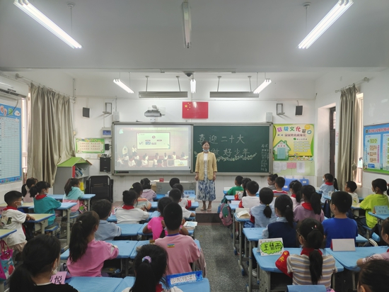 中新網(wǎng)河南9月14日電(吳勇強(qiáng))為引領(lǐng)廣大少先隊(duì)員永遠(yuǎn)跟黨走,奮進(jìn)新征程,踐行“聽(tīng)黨話、感黨恩、跟黨走”,以實(shí)際行動(dòng)迎接黨的二十大勝利召開(kāi),近日,由鄭州市共青團(tuán)主辦的《喜迎二十大,爭(zhēng)做好隊(duì)員》鄭州市少先隊(duì)開(kāi)學(xué)第一課以直播的形式開(kāi)展,管城區(qū)南學(xué)街小學(xué)組織全體少先隊(duì)員觀看學(xué)習(xí)。