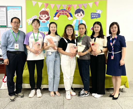 辦公室,走廊上,圖書角……外小校務班子領導將鮮花送到每位老師手中,一聲問候,一份溫暖,洋溢在校園的每一個角落,流淌在每一位教師的心中,自豪感、幸福感油然而生,教書育人的初心則更為堅定。