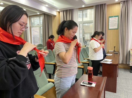 本次培訓(xùn)會(huì)由該校少先隊(duì)大隊(duì)輔導(dǎo)員王曉杰老師主持,全體中隊(duì)輔導(dǎo)員參加了培訓(xùn)。會(huì)上,王曉杰先向中隊(duì)輔導(dǎo)員介紹了少先隊(duì)的基本知識(shí)、少先隊(duì)隊(duì)課的開展方式、少先隊(duì)輔導(dǎo)員的職責(zé)、少先隊(duì)主題活動(dòng)的開展要求,然后針對(duì)少先隊(duì)標(biāo)志禮儀開展了專題講解和示范。“紅領(lǐng)巾的含義是什么?”“紅領(lǐng)巾該如何正確佩戴和使用?”“如何敬標(biāo)準(zhǔn)的少先隊(duì)隊(duì)禮?”“怎么正確地呼號(hào)”……針對(duì)問題王曉杰進(jìn)行了細(xì)致入微地講解,并對(duì)易出現(xiàn)的錯(cuò)誤和平時(shí)工作中需要注意的問題進(jìn)行了示范和手把手的指導(dǎo),對(duì)各中隊(duì)輔導(dǎo)員逐一進(jìn)行了糾正。各中隊(duì)輔導(dǎo)員認(rèn)真聽,仔細(xì)記,虛心學(xué),積極參與到活動(dòng)中。“作為新時(shí)代的中隊(duì)輔導(dǎo)員,要繼承和發(fā)揚(yáng)少先隊(duì)的光榮傳統(tǒng),進(jìn)一步規(guī)范少先隊(duì)標(biāo)志禮儀,當(dāng)好少先隊(duì)員的領(lǐng)路人、紅色基因的傳承人、少先隊(duì)改革的先鋒人。”中隊(duì)輔導(dǎo)員張文麗說道。