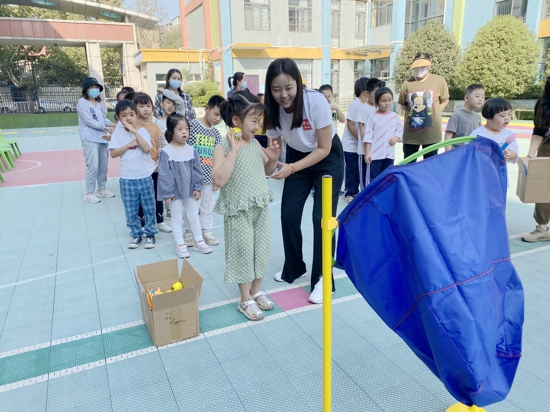 運動會在“投擲游戲”中開始,“瞄準,發(fā)射!”投擲游戲中同學們的精準投擲迎來了陣陣歡呼;“踩石過河”考驗了同學們的平衡能力和精細動作能力,“小心,穩(wěn)。”看,同學們小心翼翼地走過“海綿磚”;“障礙接力”考驗的是同學們的腿部力量,同學們跨過一個個“小跨欄”,繞過標志物,飛快地行進。最后是師生的“兩人三足”游戲,加油聲此起彼伏,各個班的啦啦隊員們奮力為班級吶喊助威,整個操場上充滿了活力。