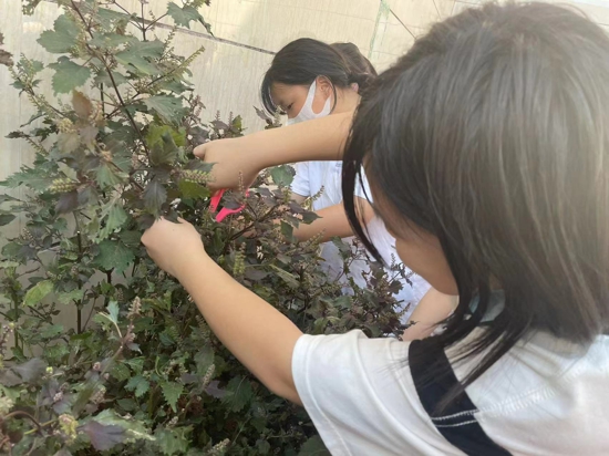 金秋時節(jié)走進校園,瞧,校園中的勞動基地——小小種植園中種植的紫蘇,各個精神抖擻,昂首挺胸,仿佛在仰著笑臉訴說著我長大了。在校園中醫(yī)要采摘節(jié)開節(jié)當天,六年級的同學們就率先體驗了一把中醫(yī)大夫的職業(yè)感。他們走出教室,親近自然,圍在種植園旁,認真的向同學們傳授著中醫(yī)文化,講述著紫蘇的形態(tài)特征及其功效,有模有樣,像極了一名名中醫(yī)大夫。采摘活動開始了,你一剪我一刀,大家忙的不亦樂乎,勞動的同時又收獲了成長的快樂。
