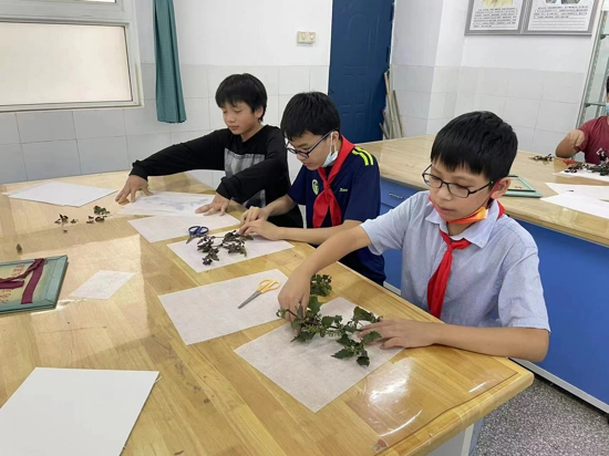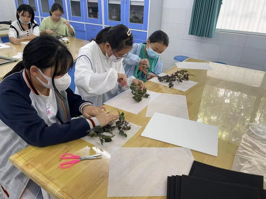 為了進一步普及中醫(yī)藥文化,讓全校的同學都能參與到中醫(yī)文化的傳承中,在學校德育處的組織下,科學老師楊培杰帶領(lǐng)同學們又進行了紫蘇標本制作活動。楊老師向同學們詳細的講述著標本的制作過程,同學們聽的非常認真并且積極的與老師進行互動。標本制作開始啦,同學們小組合作,用吸水紙和紙壓板壓制植物標本,留住植物最美姿態(tài)。小組之間還不時的探討,分享各組的優(yōu)秀做法。無論是寥寥幾片葉子還是植物擺圖,無不展現(xiàn)他們對自然的熱愛、對中醫(yī)藥文化的熱情,以及獨特的創(chuàng)造力。