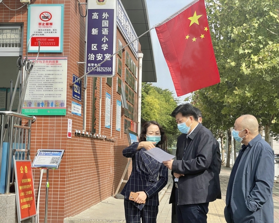 中新河南網(wǎng)10月10日電(吳勇強(qiáng))為確保國(guó)慶假期后學(xué)生安全有序返校,進(jìn)一步推進(jìn)學(xué)校校園管理和日常疫情防控工作,10月8日,鄭州市教育局黨組書(shū)記、局長(zhǎng)楚惠東在高新區(qū)管委會(huì)社會(huì)事業(yè)局副局長(zhǎng)李國(guó)林的陪同下,蒞臨高新區(qū)外國(guó)語(yǔ)小學(xué),就學(xué)校疫情防控和校園安全等各項(xiàng)工作進(jìn)行全方位指導(dǎo)。
