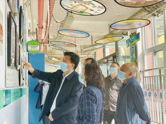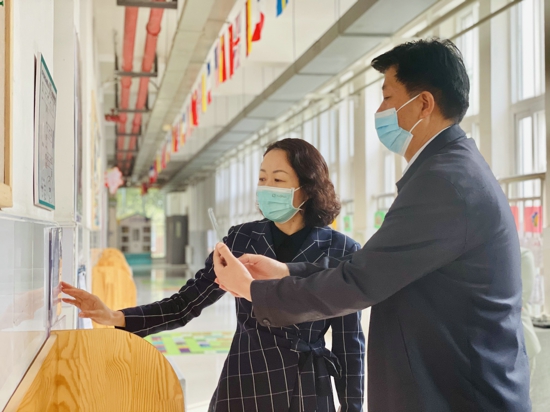 外國(guó)語(yǔ)小學(xué)校長(zhǎng)劉娜就學(xué)校疫情防控、出彩課程、常規(guī)管理、學(xué)生發(fā)展、校園文化等方面進(jìn)行了詳細(xì)介紹。楚局長(zhǎng)一行實(shí)地查看了學(xué)校門(mén)衛(wèi)值班值守、安全防疫措施、物資儲(chǔ)備、校醫(yī)崗位、國(guó)慶假期疫情防控臺(tái)賬等,詳細(xì)詢(xún)問(wèn)了師生假期動(dòng)向、師生疫情排查管理、學(xué)生心理健康教育等情況,走訪(fǎng)了外小獨(dú)具特色的茗書(shū)苑、蘭山餐廳等場(chǎng)所,對(duì)疫情防控和教育教學(xué)給予指導(dǎo)。