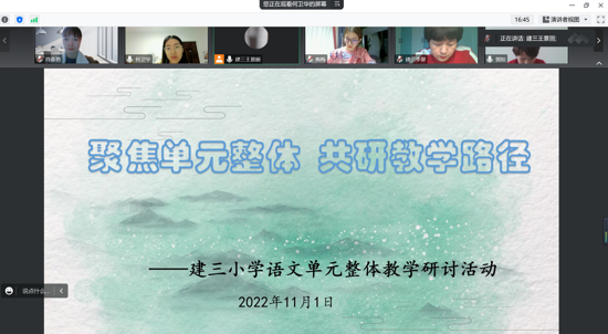 這是個“安靜”的秋季,建三小語人居家靜心,細品單元整體備課之成果,促進教師之間取長補短,真正實現(xiàn)資源共享;這也是個“熱烈”的秋季,通過云端交流,大家細細領(lǐng)會單元整體教學思路,邁開大步走起來。且行且思,砥礪前行,相信在建三小語人的齊心協(xié)力下,語文教學之路會越走越寬,越走越遠!