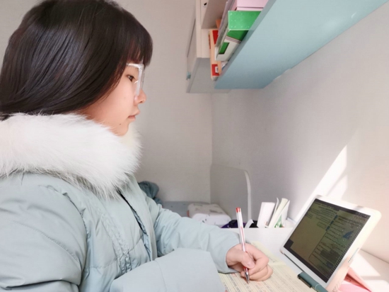 “網(wǎng)課學(xué)習(xí)中老師要求更嚴(yán)格,我也要更加認(rèn)真,因?yàn)闀r(shí)間是公平的,知識的積累是我們?nèi)松母,根深才能葉茂。”唐湫崳這樣說,也是這樣做的。