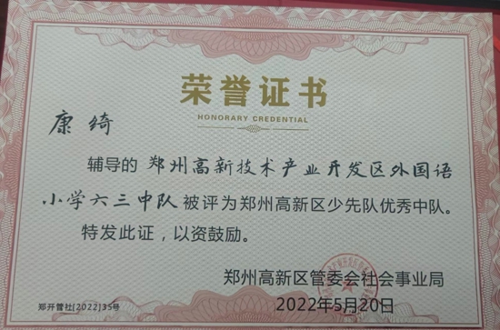 這就是鄭州高新區(qū)外國語小學的出彩教師——康綺。不論是班級管理、教學常規(guī)、還是年級引領,她盡職盡責,用行動書寫教育篇章,用熱愛滋潤學生心田。