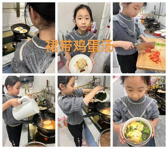 看,洗菜切菜動(dòng)作麻利,鍋鏟鍋勺上下翻動(dòng),同學(xué)們精心、用心、又小心。瞧,煎炒煮炸蒸焗燜燉,柴米油鹽醬醋糖,同學(xué)們調(diào)整佐料,掌握火候,屬實(shí)不簡(jiǎn)單。有的還推陳出新制作出不一樣的菜品來,獲得了家長(zhǎng)和同學(xué)們的紛紛點(diǎn)贊。