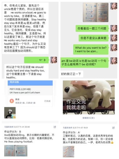 當(dāng)學(xué)生學(xué)習(xí)中遇到難題向她傾訴時(shí),馬老師立即給出精準(zhǔn)的專(zhuān)業(yè)指導(dǎo);當(dāng)學(xué)生生活中感到壓力向她尋求幫助時(shí),她總是耐心地給予建議和鼓勵(lì)。有一位學(xué)生英語(yǔ)基礎(chǔ)不夠扎實(shí),升入高年級(jí)后學(xué)習(xí)遇到了困難,這個(gè)靦腆的孩子悄悄給馬老師寫(xiě)紙條求助。馬老師看到后,反復(fù)查看這個(gè)學(xué)生近期所有的作業(yè),發(fā)現(xiàn)她的語(yǔ)法掌握不夠牢固,有時(shí)候還會(huì)偷懶,背誦作業(yè)不能保質(zhì)保量完成。在對(duì)這名學(xué)生的問(wèn)題分析后,馬老師也用小紙條回復(fù)她:“孩子,老師收到你的紙條,充滿(mǎn)了驚喜,感謝你的坦誠(chéng)和信任。六年級(jí)的學(xué)習(xí)更不能有一絲懈怠,希望你能認(rèn)真完成所有作業(yè)。語(yǔ)言學(xué)習(xí)最難得的是堅(jiān)持,你需要做的是享受學(xué)習(xí)帶來(lái)的充實(shí)感,享受英語(yǔ)帶來(lái)的新鮮體驗(yàn),至于進(jìn)步,遲早都會(huì)到來(lái),等你看到自己進(jìn)步的那一天,已經(jīng)是質(zhì)的飛躍了。”