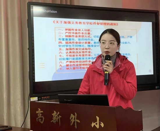 空余時(shí)間,她積極參加各類(lèi)教育教學(xué)培訓(xùn)活動(dòng),深入學(xué)習(xí)教育教學(xué)新理念,堅(jiān)持閱讀教育類(lèi)專(zhuān)著以提升自身專(zhuān)業(yè)素養(yǎng),將理論學(xué)習(xí)與教育教學(xué)實(shí)踐相結(jié)合。在學(xué)校組織的教師基本功大賽、優(yōu)質(zhì)課評(píng)選等活動(dòng)中,她總能獨(dú)樹(shù)一幟;在高新區(qū)組織的單元教學(xué)設(shè)計(jì)、作業(yè)建設(shè)研討活動(dòng)中,她分享的“英語(yǔ)作業(yè)關(guān)鍵問(wèn)題”引發(fā)共鳴,效果突出。