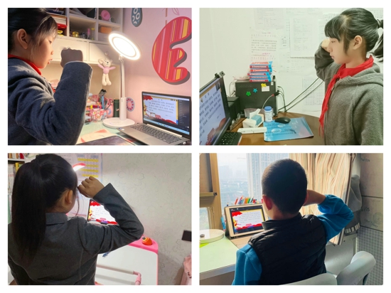 愛眼護眼始于心,科學(xué)護眼踐于行。師生從生活作息有規(guī)律、飲食均衡有營養(yǎng)、勞逸結(jié)合有方法等方面交流了居家網(wǎng)課期間保護視力的具體做法,練習(xí)了一些小妙招,讓隊員們在緩解眼部疲勞的同時,養(yǎng)成科學(xué)的用眼習(xí)慣,用實際行動守護心靈之窗。