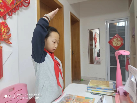 早上八點(diǎn),在全體師生的注目禮下,升旗儀式正式開始。英姿颯爽的軍人邁著鏗鏘有力的步伐護(hù)送著鮮艷的五星紅旗,伴隨著嘹亮的歌聲,五星紅旗冉冉升起。全體師生肅穆敬禮,自豪與驕傲之情油然而生。