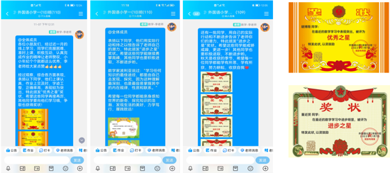 反饋評價,多管齊下。李老師會根據(jù)不同學(xué)生的閃光點,仔細(xì)雕琢評價和鼓勵的語言;重視每一個孩子的細(xì)小進(jìn)步,精心制作電子獎狀,并附上殷殷寄語,讓出彩果兒在數(shù)學(xué)的學(xué)習(xí)中收獲滿滿的自信。