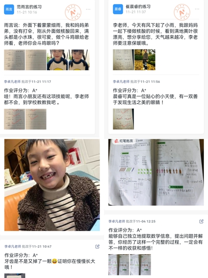 在家校共育上,她將心比心、換位思考,從家長的角度出發(fā),給予充分的理解和尊重,積極幫助家長解決問題;她認(rèn)真負(fù)責(zé)、從不敷衍,家長的信息從不遺漏,家長的疑惑耐心解答,力求做到凡事有交代,件件有著落,事事有回音;她樂于記錄、熱心分享,作為溝通家校的橋梁,她及時分享每一個學(xué)生的成長瞬間,讓家長時刻見證孩子的成長,打開家長了解學(xué)生在校生活的一扇窗。