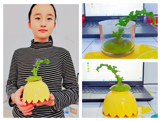活動(dòng)中,孩子們在老師的指導(dǎo)下、家長的幫助下積極開展了豐富多樣的活動(dòng)。語文學(xué)科中,孩子們在老師的帶領(lǐng)下朗誦了與大雪節(jié)氣有關(guān)的詩詞并制作了一幅幅精美的詩配畫,一起跟隨詩人的腳步探索古詩中的大雪;美術(shù)學(xué)科中,老師給孩子們講述大雪節(jié)氣的民俗藝術(shù)知識(shí)并帶領(lǐng)大家一起創(chuàng)作“雪房子”“國風(fēng)蘿卜”“臘梅花”等富有創(chuàng)作性的美術(shù)作品,讓孩子們在充分了解節(jié)氣知識(shí)的同時(shí)豐富美術(shù)創(chuàng)作體驗(yàn);科學(xué)學(xué)科則開展了“觀察水培蘿卜”“感受南北氣溫差異”“制作小雪人”等科學(xué)實(shí)踐活動(dòng),極大地調(diào)動(dòng)了孩子們的參與積極性;音樂老師帶領(lǐng)孩子們學(xué)習(xí)節(jié)氣歌、表演手勢舞,感受節(jié)氣的別樣韻味;還有勞動(dòng)課堂上,各班紛紛開展了燉羊肉、炸蘿卜丸子、巧做蓮藕等豐富多彩的勞動(dòng)實(shí)踐活動(dòng),引導(dǎo)孩子們對(duì)大雪節(jié)氣的食俗有了更深一步的了解。
