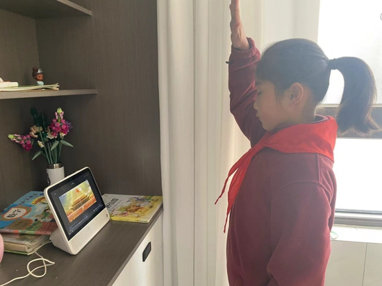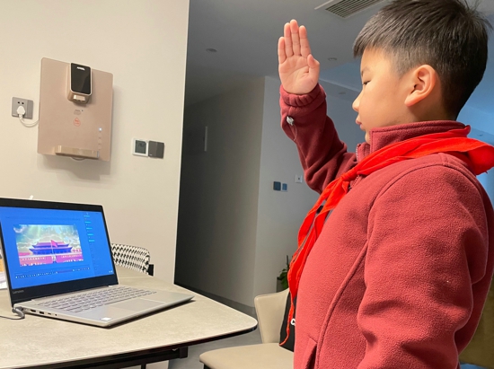 此次線上升旗儀式由梧桐中隊(duì)隊(duì)員常子軒主持,升旗儀式上,常子軒帶領(lǐng)隊(duì)員們通過視頻資料一同回顧了即將過去的2022年,從北京冬奧到神州飛天;從福建號(hào)正式下水到全球首架C919大飛機(jī)的交付;從香港回歸25周年紀(jì)念到抗擊疫情中的肝膽相助;從重慶山火中的騎行少年到冒著風(fēng)雪戍守邊疆的年輕戰(zhàn)士……梧桐中隊(duì)隊(duì)員張若瑜在活動(dòng)后講到:“在回顧的過程中深切感受到了這一年中人民的堅(jiān)忍、祖國(guó)的富強(qiáng),同時(shí)也看到了時(shí)代給予我們的使命。”