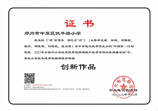 喜報(bào)!鄭州市中原區(qū)伏牛路小學(xué)榮獲國(guó)家級(jí)校本德育視頻課程展播創(chuàng)新作品獎(jiǎng)!