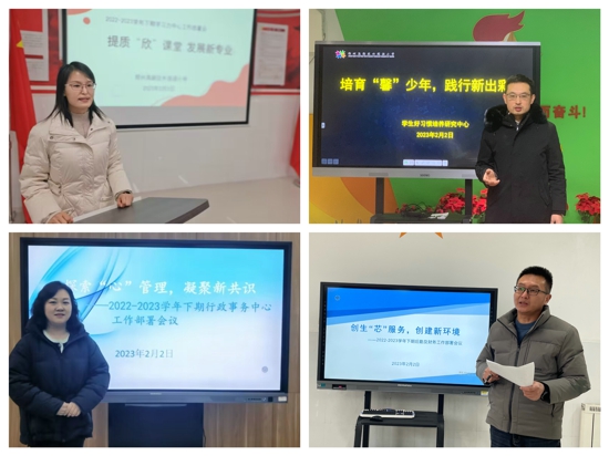 行政班子謀劃會后,各領(lǐng)域主管領(lǐng)導(dǎo)組織部門中層干部進行新學(xué)期工作梳理,圍繞四大主題,總結(jié)經(jīng)驗、提出要求、精心謀劃、具體安排,以提升教育教學(xué)質(zhì)量為核心,創(chuàng)新工作思路,凝聚新共識,同心共進,齊抓共管,層層落實,確保教育教學(xué)質(zhì)量實現(xiàn)新增長,不斷開創(chuàng)外小教育新局面。