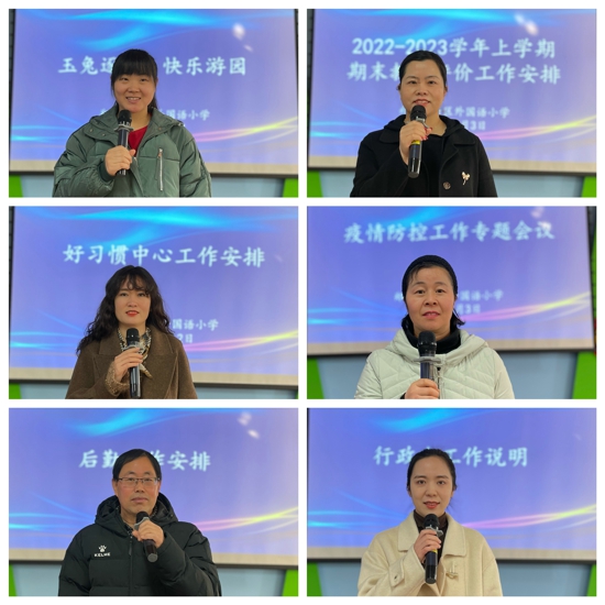 2月2日,新學(xué)期全體教師全面工作部署會議如期召開。學(xué)校準(zhǔn)備了滿滿的儀式感,希望老師們懷揣12句教育箴言開啟出彩之路,手持一本好書品味書香底蘊。各部門主任就新學(xué)期相關(guān)工作進行詳細(xì)解讀和安排部署,并對各項工作提出新的要求。劉校長指出,外小每一位教師要厚德博學(xué),努力發(fā)展自身素養(yǎng),實現(xiàn)個人價值;以生為本,精鉆教育專業(yè),積極開展教學(xué)研究,提升課程開發(fā)與領(lǐng)悟能力,探索課堂教學(xué)有效形態(tài)。凝聚大家智慧,打造新課標(biāo)、新內(nèi)涵、新出彩的外小品牌。