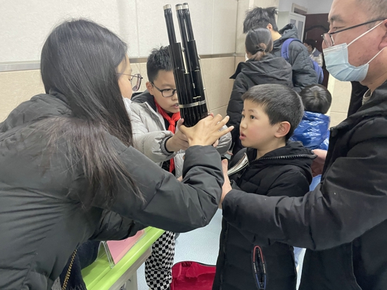 在百花藝術(shù)小學(xué),每一位新入校的學(xué)生都要經(jīng)歷一個(gè)特殊的儀式——選擇一門與自身興趣和特點(diǎn)相適切的藝術(shù)專業(yè),拜師學(xué)藝。首先,老師們耐心地向?qū)W生和家長(zhǎng)們講解各類藝術(shù)專業(yè)和樂(lè)器的特點(diǎn),高年級(jí)學(xué)生為一年級(jí)的學(xué)弟學(xué)妹進(jìn)行了精彩展示。隨后,學(xué)生和家長(zhǎng)一起暢游在大提琴、低音提琴、二胡、古箏、古琴、琵琶、阮、揚(yáng)琴、竹笛、嗩吶、笙、陶笛、打擊樂(lè)、單簧管等十余種藝術(shù)課程的展示臺(tái)前,迫不及待地進(jìn)行了不同樂(lè)器的初體驗(yàn),感受各種樂(lè)器的美妙旋律,最后精心地選擇一門喜歡的藝術(shù)課程,從而在未來(lái)的六年里“走班上課”,盡情暢游在藝術(shù)的海洋中。