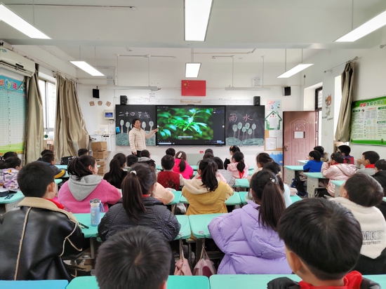 中新河南網(wǎng)2月19日電(吳勇強(qiáng))俗話說(shuō)“春雨貴如油”,在這萬(wàn)物逐漸蘇醒的春季,迎來(lái)了新一年里的第二個(gè)節(jié)氣“雨水”。為了讓孩子們了解雨水節(jié)氣的特點(diǎn)以及傳統(tǒng)習(xí)俗,進(jìn)一步增強(qiáng)學(xué)生對(duì)二十四節(jié)氣的了解,充分感受中華優(yōu)秀傳統(tǒng)文化的魅力,2月17日,管城回族區(qū)南學(xué)街小學(xué)組織學(xué)生開(kāi)展了“觸摸自然之律”二十四節(jié)氣之雨水認(rèn)知主題教育活動(dòng)。