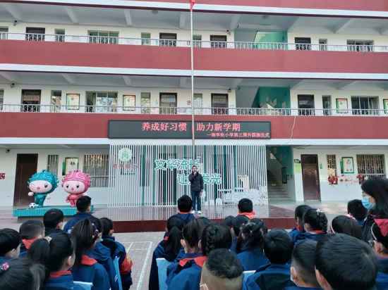 在升旗儀式上,該校大隊輔導員王曉杰關(guān)于新學期行為習慣養(yǎng)成教育給隊員們提出了要求,他希望大家要從身邊的每一件小事做起,堅持用好習慣的標準要求自己,以點帶面,通過大家的努力讓好習慣之花在校園盛開。