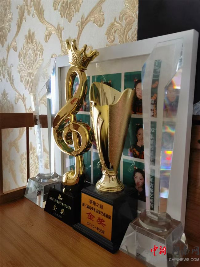 2019年暑假,媽媽為周詩(shī)涵報(bào)名參加了人生第一次的古箏比賽——“小演奏家”第十一屆青少年古箏邀請(qǐng)賽,參賽的曲目是一首輕快活潑的《春苗》,3分鐘的曲子雖然不長(zhǎng),但是對(duì)于剛滿5歲、習(xí)箏剛一年的周詩(shī)涵來說,要在比賽中保證左右手配合不出錯(cuò)、遙指不卡殼,還是有難度的。賽前,周詩(shī)涵加緊練習(xí),練琴時(shí)長(zhǎng)從每天半小時(shí)逐漸增加到1小時(shí),直到能夠完整不出錯(cuò)的彈奏參賽曲目10遍才能結(jié)束一天的練習(xí)。由于賽前的認(rèn)真準(zhǔn)備,比賽當(dāng)天,周詩(shī)涵沒有出現(xiàn)一個(gè)錯(cuò)音,順利完成了比賽,也順利拿到了人生第一個(gè)古箏一等獎(jiǎng)。嘗到了勝利的喜悅,周詩(shī)涵學(xué)習(xí)古箏的勁頭也就更足了,每天自覺練琴,每周堅(jiān)持上課,每年報(bào)考等級(jí)考試,到2022年,周詩(shī)涵順利考過了古箏十級(jí),期間,參加的各類古箏比賽都能取得優(yōu)異的成績(jī),先后獲得了“小演奏家”第十二屆、十三屆青少年古箏邀請(qǐng)賽、第三屆“豫箏之音”河南省古箏青少年古箏藝術(shù)展演金獎(jiǎng)。