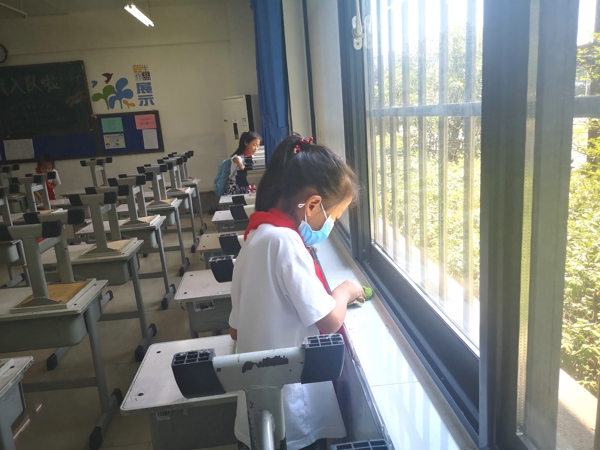 在中隊輔導員的帶領下,少先隊員紛紛拿著掃帚、拖把、抹布、水桶等勞動工具,到劃定的衛(wèi)生區(qū)域里打掃衛(wèi)生。大家本著“團結協(xié)作、愛校如家”的精神,相互配合,不怕臟、不怕累——打掃教室、擦洗窗戶、整理桌凳、清除死角……雖然少先隊員汗流浹背,但樂在其中,表現(xiàn)了良好的精神風貌。大掃除活動現(xiàn)場氣氛十分活躍,大家忙碌的身影,成為校園最美的流動風景。經過大家的共同努力,校容校貌煥然一新,到處都透出清爽與潔凈。