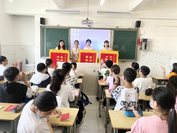錦旗,代表著榮譽(yù),是對(duì)老師最高的褒獎(jiǎng);代表著認(rèn)可,是對(duì)學(xué)校最大的肯定。散學(xué)典禮這天,三位家長(zhǎng)代表將印著“桃李滿天下授教固有方”“春雨潤(rùn)物明德育才澤流及遠(yuǎn)千里思源”“疼愛無微不至關(guān)懷教導(dǎo)有方”“好習(xí)慣陪伴終生好老師影響一生”燙金大字的錦旗送到學(xué)校,以此表達(dá)對(duì)學(xué)校、對(duì)任課老師關(guān)愛孩子、無私奉獻(xiàn)的感激之情,一股暖意涌上心頭。兩個(gè)班的任課老師對(duì)家長(zhǎng)們表示感謝并合影留念。