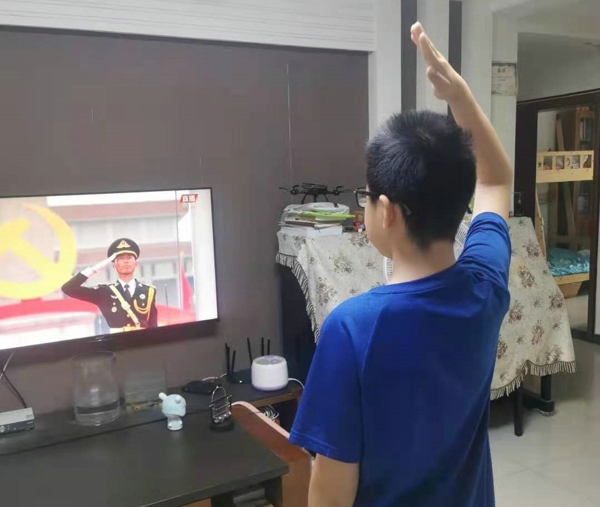用紅色基因奠基生命底色,用接力奮斗擔(dān)當(dāng)復(fù)興大業(yè)!以新時(shí)代好少年的光榮使命來督促自己。外國小學(xué)全體少先隊(duì)員們在家中一齊認(rèn)真觀看慶祝中國共產(chǎn)黨成立100周年大會,激動萬分!
