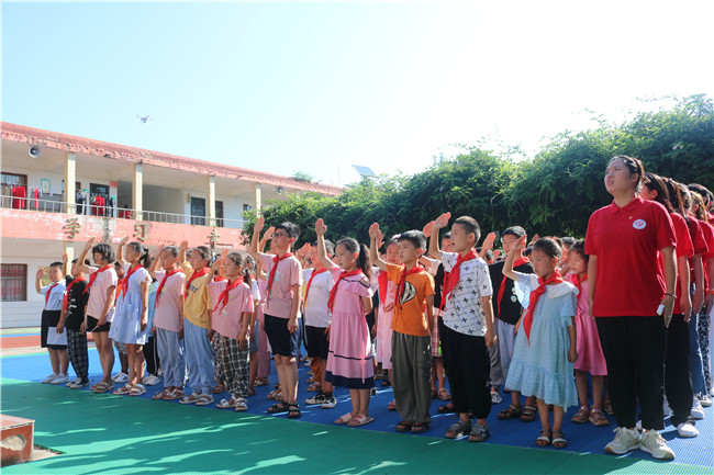 在伊川縣葛寨鎮(zhèn)沙園小學(xué),鄭州電力高等?茖W(xué)校暑期社會(huì)實(shí)踐團(tuán)開展了“學(xué)黨史 強(qiáng)信念 跟黨走”主題升旗儀式、愛國愛黨主題班會(huì)。