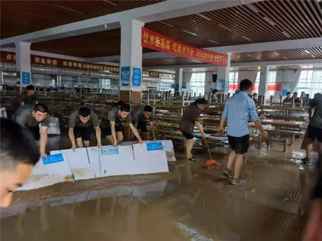 師生轉(zhuǎn)危為安。21日早晨,東明校區(qū)積水尚未退去,淤泥沉積嚴(yán)重。王浩然、張瑩再次前往校區(qū)內(nèi)各處了解受災(zāi)情況,在外部物資無(wú)法進(jìn)入的情況下,積極協(xié)調(diào)保衛(wèi)處、后勤服務(wù)中心等部門(mén),自發(fā)組織進(jìn)行校園排水、道路清淤等工作,學(xué)校餐廳利用現(xiàn)有資源,迅速制作應(yīng)急食品,保障學(xué)生基本生活物資供應(yīng),保證正常生活秩序。在學(xué)校黨委的統(tǒng)一部署和安排下,東明辦積極組織、協(xié)調(diào)、配合學(xué)校各部門(mén)、各單位開(kāi)展了河南省第二屆學(xué)生軍事訓(xùn)練營(yíng)100余名軍訓(xùn)官兵、廣大教職工志愿者清理道路垃圾、淤泥等系列防汛救災(zāi)活動(dòng),食堂、宿舍樓、道路上,隨處都能看到大家揮灑汗水的身影,在廣大師生爭(zhēng)分奪秒、分秒必爭(zhēng),團(tuán)結(jié)協(xié)作、奮力拼搏下,東明路校區(qū)積水已清理完畢,路面煥然一新,各場(chǎng)地整潔干潔,全力保障東明校區(qū)的基本穩(wěn)定,降低了災(zāi)情損失,為后續(xù)救災(zāi)防汛工作的開(kāi)展奠定了堅(jiān)實(shí)基礎(chǔ)。“面對(duì)汛情,作為一名黨員,必須排除萬(wàn)難、沖鋒在前,把師生的生命財(cái)產(chǎn)安全放到第一位,堅(jiān)決做到越是艱險(xiǎn)越向前!”持續(xù)奮戰(zhàn)了好幾天的王浩然、張瑩異口同聲地說(shuō)道。