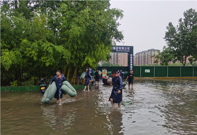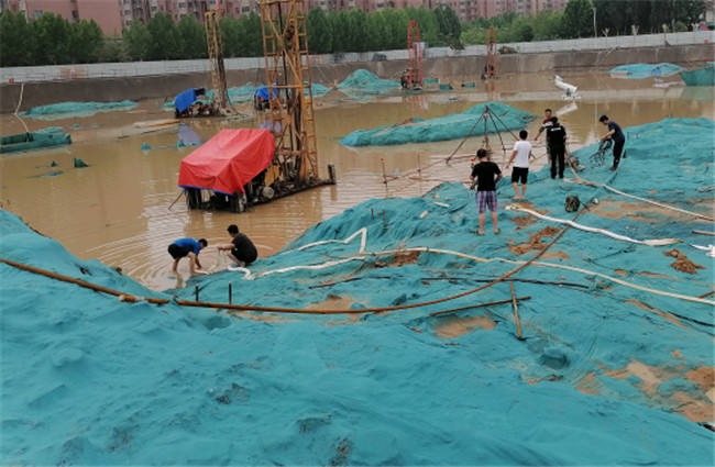保安全降損失。7月20日,降雨持續(xù)增大;21日,暴雨仍在繼續(xù),鄭州市多次發(fā)布暴雨紅色預(yù)警;交通受阻、信號(hào)中斷、電壓不穩(wěn)等不良情況陸續(xù)發(fā)生,工地防汛壓力驟然加大。面對(duì)洪水肆虐,基建人聞“汛”而動(dòng),全員堅(jiān)持工地一線,全面排查防汛隱患風(fēng)險(xiǎn)點(diǎn),以最嚴(yán)措施、最嚴(yán)紀(jì)律、最嚴(yán)作風(fēng),全力做好在建工程防汛安全。在建工程現(xiàn)場(chǎng),依照防汛應(yīng)急響應(yīng)的方案,全面投入防汛工作。組織人員關(guān)停了所有機(jī)器,關(guān)閉非必要電源,用雨布遮蓋用電設(shè)備,嚴(yán)防漏電事故發(fā)生;建立防汛墻,防止雨水灌入低洼區(qū)域;選派人員前往樓頂,及時(shí)疏通排水口,確保排水順暢;地下室放置多臺(tái)潛水泵、場(chǎng)地外開挖排水溝進(jìn)行引流,24小時(shí)不間斷抽排雨水。通過一系列措施,最大限度降低建設(shè)損失,保證工程基坑和主體結(jié)構(gòu)安全,確保無安全事故發(fā)生。