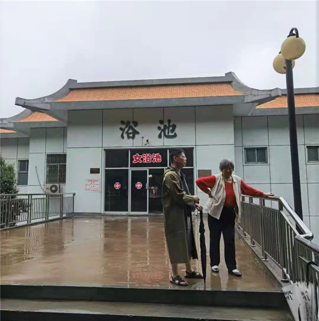 董事長(zhǎng)王淑芳在副校長(zhǎng)張其武陪同下查看校園汛情