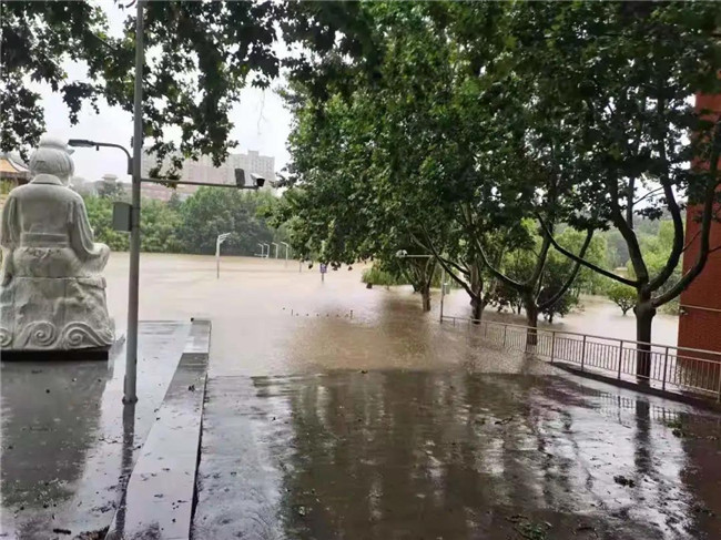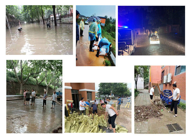 不畏暴雨,靠前指揮。連日暴雨導(dǎo)致校園積水嚴(yán)重,部分區(qū)域短時(shí)間內(nèi)積水達(dá)十余米深,部分樓宇進(jìn)水,情況危急。學(xué)校董事會(huì)及董事長(zhǎng)王淑芳高度重視汛情,校領(lǐng)導(dǎo)王新奇、郭愛(ài)先、張金安、張其武,身先士卒、靠前指揮,迅速組織力量防汛救災(zāi),帶領(lǐng)總務(wù)處人員及各一線值班人員,冒雨對(duì)防洪關(guān)鍵部位進(jìn)行疏導(dǎo),對(duì)重點(diǎn)位置設(shè)置沙袋,對(duì)淹沒(méi)區(qū)域水電進(jìn)行安全切斷處置,對(duì)危險(xiǎn)區(qū)域設(shè)置警戒線,嚴(yán)防次生災(zāi)害,保障全校師生生命安全及基本水電供應(yīng)和道路暢通。