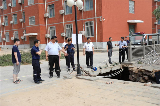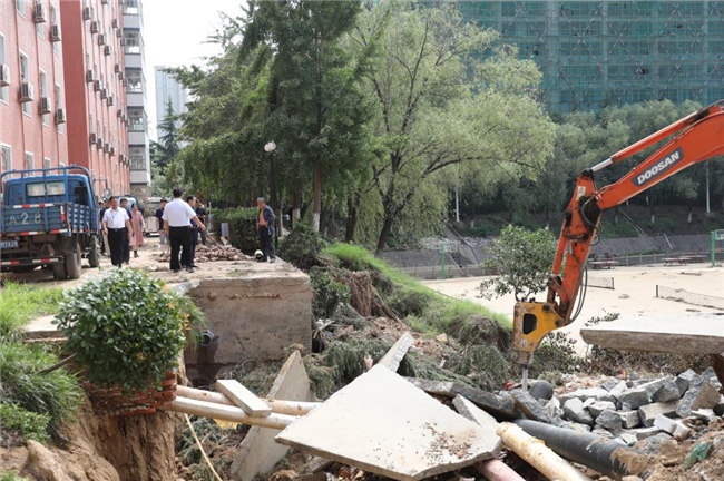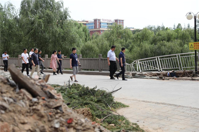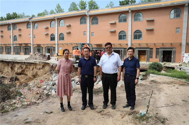 工作會(huì)結(jié)束后,平奇一行來(lái)到學(xué)校受災(zāi)嚴(yán)重的藝術(shù)樓、書望書院、后山、無(wú)名湖等處,實(shí)地勘察受災(zāi)情況,看望和慰問(wèn)了災(zāi)后重建的工作人員們,代表教育廳對(duì)他們不辭辛苦、積極進(jìn)行防汛救災(zāi)工作表示的感謝。