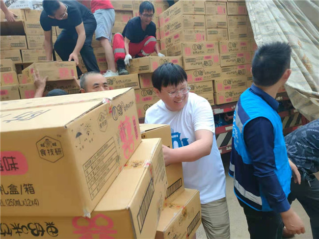 會計學院教師黨員何保國教授時刻牢記發(fā)揮黨員的先鋒模范作用,積極聯(lián)絡各方,主動參與到鄭州市二七區(qū)青年志愿者服務工作中,在二七區(qū)地方糧食儲備庫裝卸、分裝全國各地運送至鄭州的援助物資。在7月24日、25日兩天時間里,他與其他志愿者一起,共裝卸、轉(zhuǎn)運瓶裝水逾3000件、香菇醬100件、救援藥品300箱。