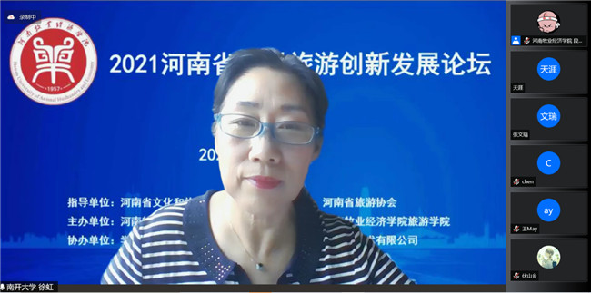 南開大學休閑農(nóng)業(yè)與鄉(xiāng)村旅游研究中心主任、博士生導師徐虹教授作《鄉(xiāng)村振興與旅游產(chǎn)業(yè)創(chuàng)新發(fā)展的再思考》主題演講。徐虹的關(guān)于鄉(xiāng)村旅游建設(shè)“四生和諧系統(tǒng)”、“123456”發(fā)展策略等理論引發(fā)了與會者極大的興趣;關(guān)于河南省應積極發(fā)展研學、度假、康養(yǎng)和體育旅游的建議,對河南鄉(xiāng)村旅游創(chuàng)新發(fā)展大有裨益。