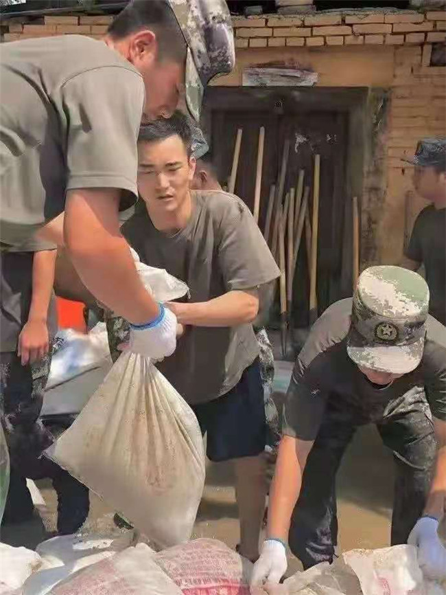 孫逸冰看到自己的家鄉(xiāng)受到洪水的沖擊,作為一名退伍大學(xué)生,他暗自下定決心做“熱血青年,主動加入淇縣退役士兵志愿救援隊進行搶險救災(zāi)工作。經(jīng)淇縣西崗鎮(zhèn)政府批準后,救援隊主動參與到了正在抗洪救災(zāi)的中國人民解放軍某軍團空中突擊旅的一線駐防堤任務(wù)中,與救援官兵一起防汛駐防堤。孫逸冰與某軍團并肩作戰(zhàn),拿著鐵鍬鏟沙,用手接力運輸沙袋,筑牢河道防堤。積水漫過膝蓋,雨水淋濕全身,顧不上歇息的他,又給當?shù)剞D(zhuǎn)移安置的災(zāi)民卸被褥,轉(zhuǎn)運救災(zāi)物資。