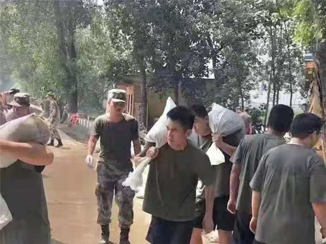 鶴壁市?h因承擔4個泄洪區(qū)。7月28日,孫逸冰跟隨救援隊前往鶴壁市?h,將抽水泵送去防汛一線,并轉(zhuǎn)運1噸的消毒水。7月29日,淇縣武裝部緊急集合民兵去鶴壁市?h下屬鄉(xiāng)鎮(zhèn)七股路村,同救援軍隊官兵共同加固河堤、堵泄漏。孫逸冰等退伍人員主動申請加入,經(jīng)批準后,迅速編排到民兵隊伍中。村頭是共產(chǎn)主義橋,河道水位持續(xù)上漲,部分地方?jīng)]過房頂。孫逸兵和退役戰(zhàn)友們經(jīng)過數(shù)夜奮戰(zhàn),最終完成轉(zhuǎn)移受災(zāi)群眾、加固河堤等任務(wù)。