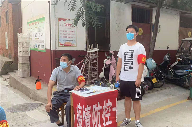 家住許昌市魏都區(qū)西大辦事處德科苑社區(qū)的20級會計1班學(xué)生常賀童,在此次疫情爆發(fā)之后,積極響應(yīng)家鄉(xiāng)黨團組織號召,參與到社區(qū)疫情防控志愿服務(wù)中,成為小區(qū)防疫卡點和核酸檢測的一名志愿者。主要負責小區(qū)通行卡點的信息登記、檢查健康碼、測量體溫和核酸檢測的信息登記、秩序維護、答疑解惑等工作。雖然天氣悶熱,頭發(fā)和衣服總是被汗水浸濕,有時甚至連續(xù)數(shù)個小時工作來不及吃飯,但該同學(xué)始終一絲不茍、認真對待,嚴格排查過往車輛和人員并登記相關(guān)信息,測量體溫、檢查健康碼、行程碼,同時協(xié)助其他防控人員完成物資發(fā)放、清潔消殺等工作。他以實際行動彰顯新時代青年的擔當和溫度,讓青春在防控一線接受了“洗禮”。