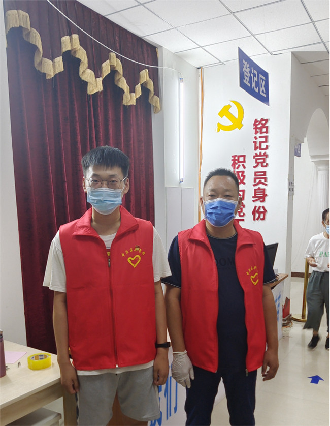 46歲的趙開言來自河南信陽大別山革命老區(qū),是一名共產黨員。8月1日鄭州市中原區(qū)啟動第一次全員核酸檢測,他第一個挺身而出到社區(qū)報名做志愿者。21歲的趙國洋是東北農業(yè)大學物流工程專業(yè)的大三學生。在學校里,他品學兼優(yōu),曾任班長、學習委員等職務,并多次在學科競賽中獲得省級、國家級獎項。作為一名預備黨員,在父親的影響下他也主動請纓加入疫情防控志愿服務工作。父子二人身著紅馬甲與社區(qū)工作者、醫(yī)護人員和其他志愿者共同擔負起了秦江社區(qū)的各項疫情防控任務,用實際行動傳承紅色基因。