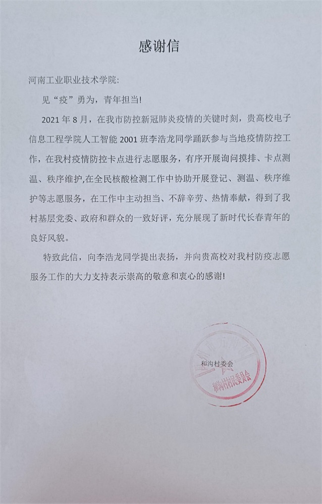 從防汛到防疫,哪里有需要,哪里就有河南工業(yè)職業(yè)技術(shù)學(xué)院青年學(xué)子的身影,在這場(chǎng)沒(méi)有硝煙的阻擊戰(zhàn)中,他們用青春詮釋?xiě)?zhàn)“疫”擔(dān)當(dāng),構(gòu)筑起一道道“青春防線”,彰顯新時(shí)代青年的責(zé)任和擔(dān)當(dāng)。