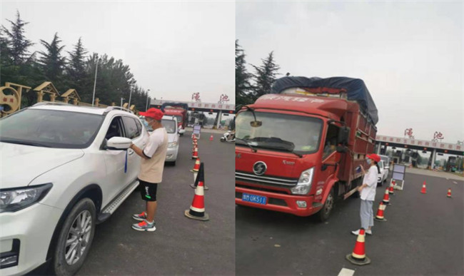 “您好,請(qǐng)問(wèn)您從哪里過(guò)來(lái)的,請(qǐng)出示您的行程碼”,“請(qǐng)您注意行車安全,不要疲勞駕駛”,“請(qǐng)讓我為您測(cè)量體溫”,“祝您一路順風(fēng)”。從澠池站下高速的司機(jī)會(huì)遇到這樣青澀的面孔,他們是暑假返鄉(xiāng)的文化旅游與國(guó)際教育學(xué)院商務(wù)英語(yǔ)1903班柳典和楊國(guó)杰。