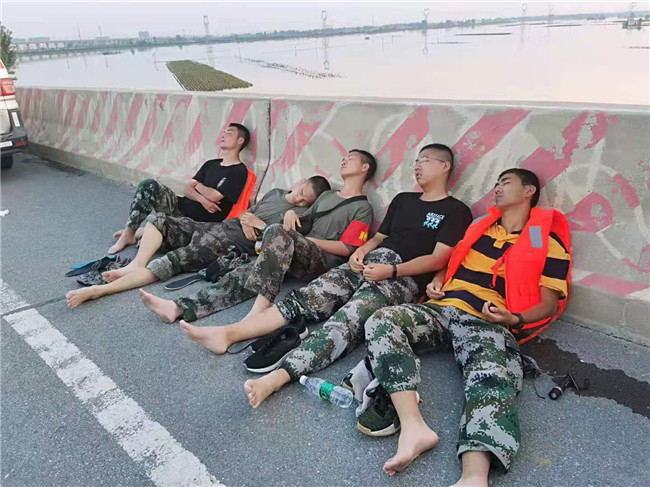 遵從集中專業(yè)優(yōu)勝的原則,田留青重新被調(diào)整到衛(wèi)輝救援第一線去。途徑共產(chǎn)主義渠大橋時(shí)他們接到就近轉(zhuǎn)移過河群眾的任務(wù),田留青迅速下車,在炎熱的太陽下維持秩序、轉(zhuǎn)移上下船群眾。盡管頭部被曬傷,胳膊上也起了大面積的水泡,但他始終沒有停下腳步,連續(xù)奮戰(zhàn)十三個(gè)小時(shí),直到與其他救援隊(duì)輪換休息,疲憊的他才靠著橋的護(hù)欄坐下來,稍微休息一下。