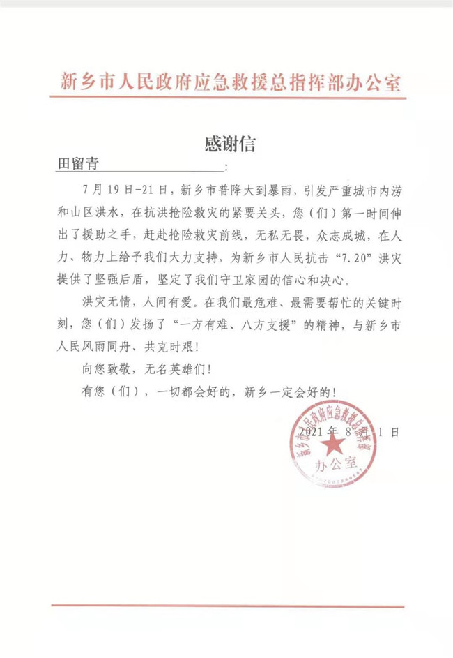 救援結(jié)束后田留青返回了家鄉(xiāng),他還收到了新鄉(xiāng)市政府的感謝信。8月初,他又有了新的身份,成為社區(qū)的一名防疫志愿者。每天從早到晚,他一直在忙碌著:登記來訪人員、量測(cè)體溫、防疫消殺……“我也有一份清澈的愛,想要獻(xiàn)給祖國和人民。”田留青希望自己能貢獻(xiàn)出更多的青春力量。