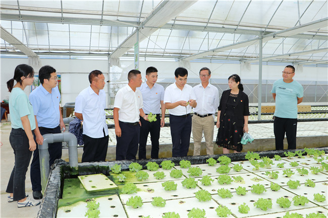 該?萍继幪庨L(zhǎng)史洪中現(xiàn)場(chǎng)指導(dǎo)水培蔬菜種植